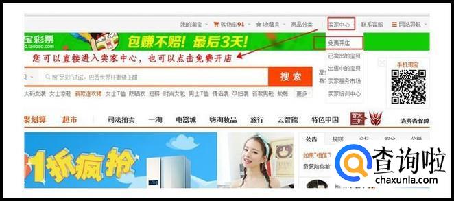未绑定支付宝账户,请在支付宝账户注册激活后,登户陆您已注册并激活的淘宝账号,点击淘宝网首页导航条右上方的"卖家中心"或直接点击"免费开店",如下图。
