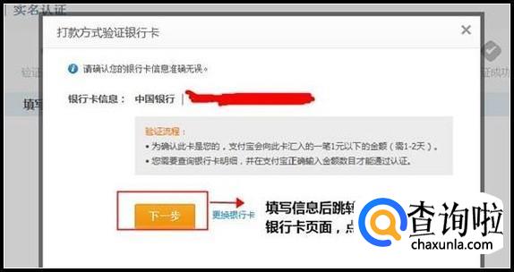 您会看到以下页面,请填写与您支付宝账户注册时相同身份证号码开户的,并可正常使用的银行卡信息,并按页面提示操作。