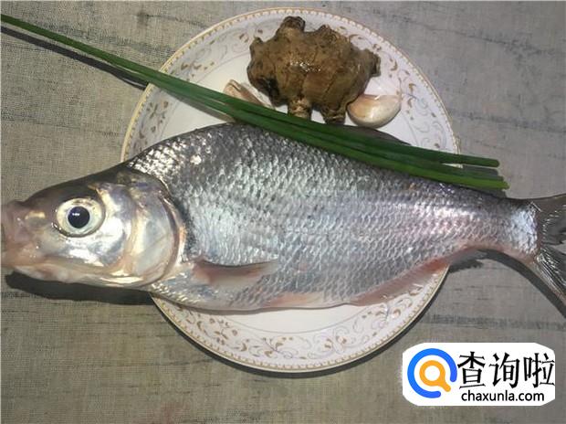 准备好所有材料:新鲜的鱼一条,姜蒜适量,葱一根。