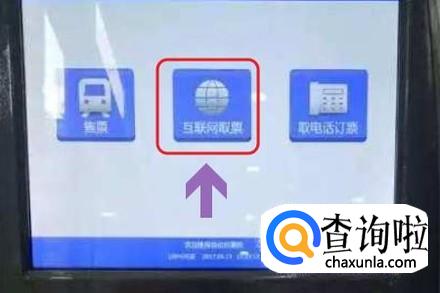 找一个人少的取票机,然后拿出自己的身份证,将其放置在身份证识别区,然后点击屏幕上的“互联网取票”,如下图所示...