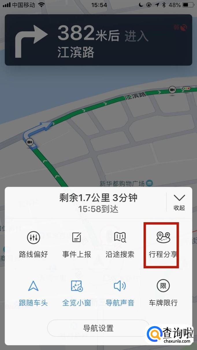 接着点击行程分享,如下图所示。