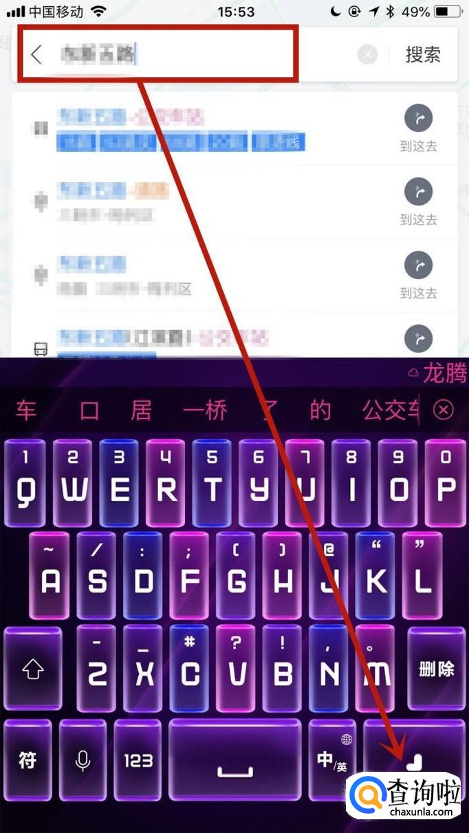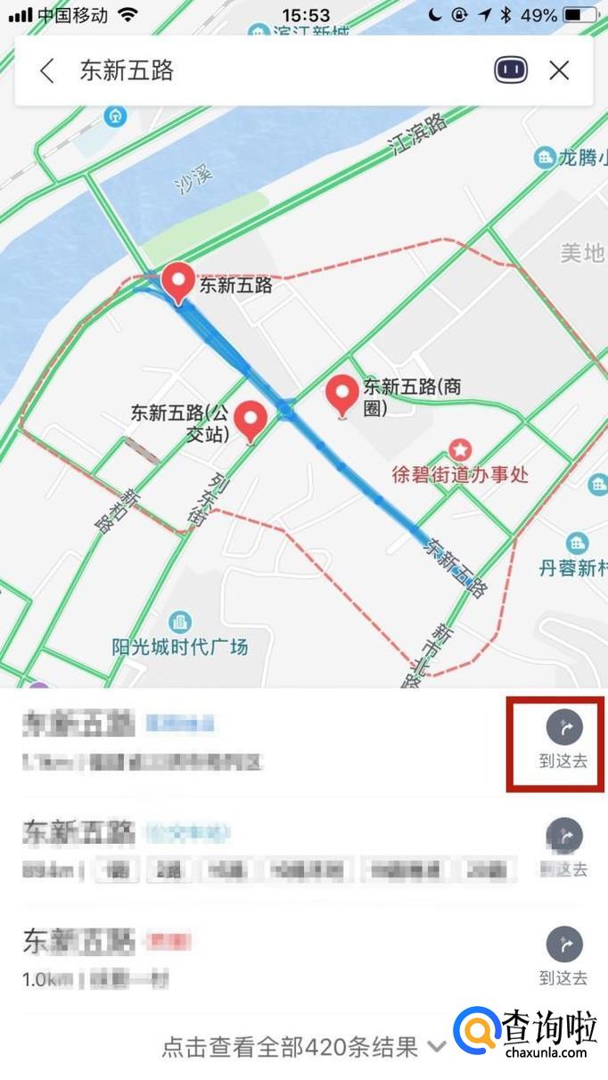 接着输入你想要去的地址并点击搜索,如下图所示。
