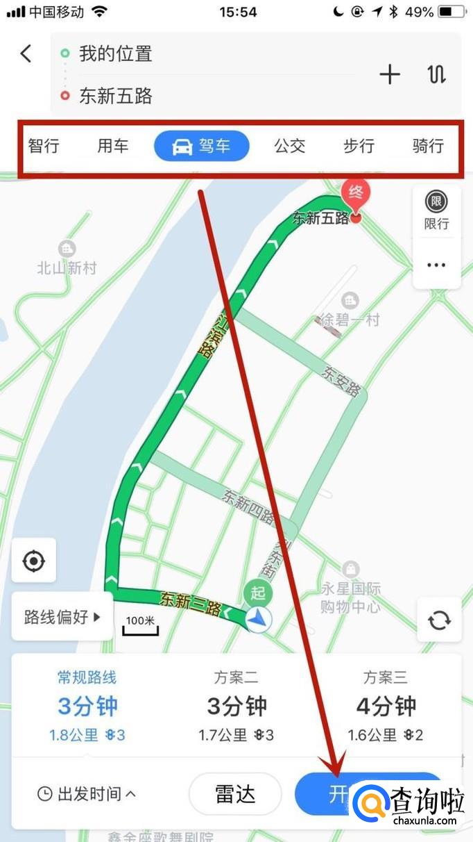 接着点击选择我们想要的出行方式并点击开始导航,如下图所示。