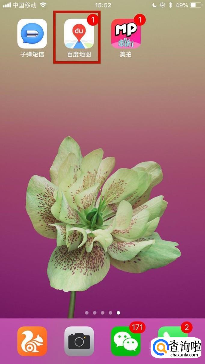 首先在我们的手机桌面上找到百度地图并点击它,如下图所示。