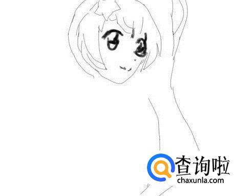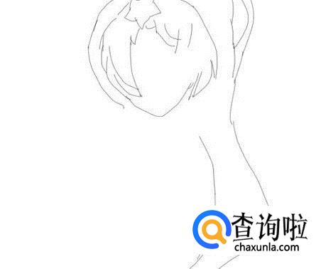 再在画好的头部下面画出贝贝公主的脖子及胸部,如图所示: