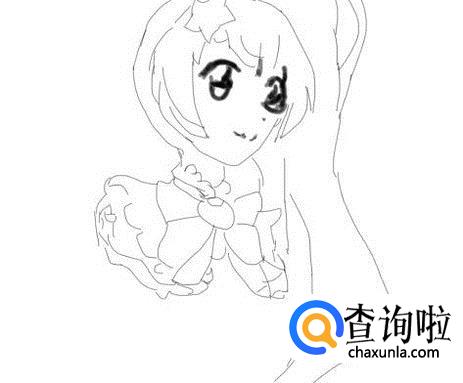 最后在画出贝贝公主的身体及胳膊,然后在画出贝贝公主的衣服,这样我们的贝贝公主就画好了,如图所示: