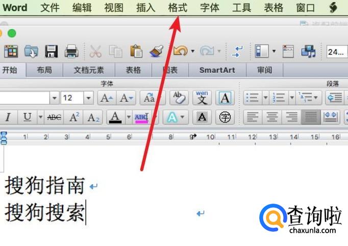 打开word文档,输入文字后,点击上方菜单栏的‘格式’