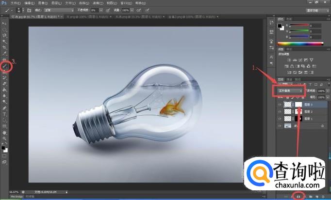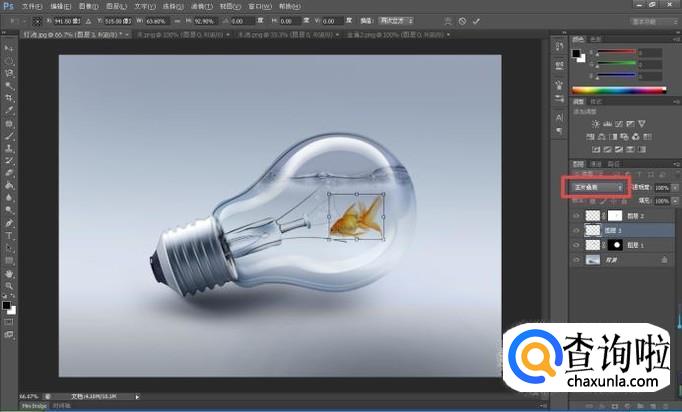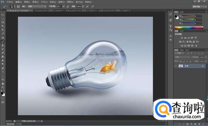 以上步骤之后,简单的制作灯泡中的金鱼效果就完成了。