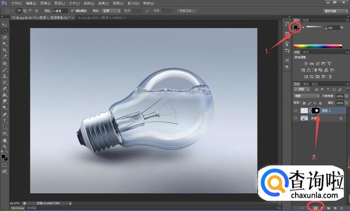 将前景色设置为黑色,点击“添加蒙版”按钮为图层1添加蒙版;