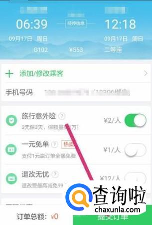 选择合适的车次,点击并进入,填写好个人信息,即刻提交订单完成付款,如图所示。