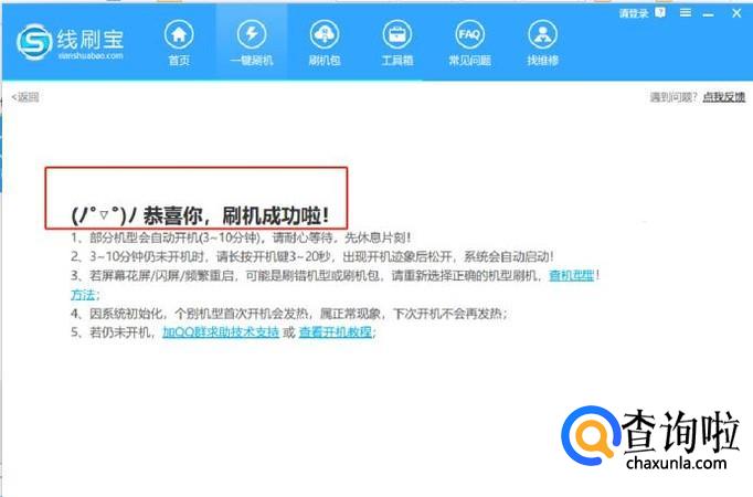 然后会进入刷机模式,我们按照线刷宝上面的提示步骤操作即可,刷机完成后会弹出刷机成功与否的提示。