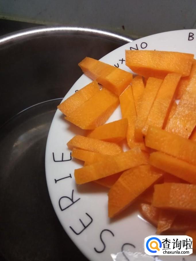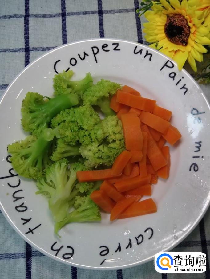 将胡萝卜和西兰花分别焯水,焯水后,捞出备用。