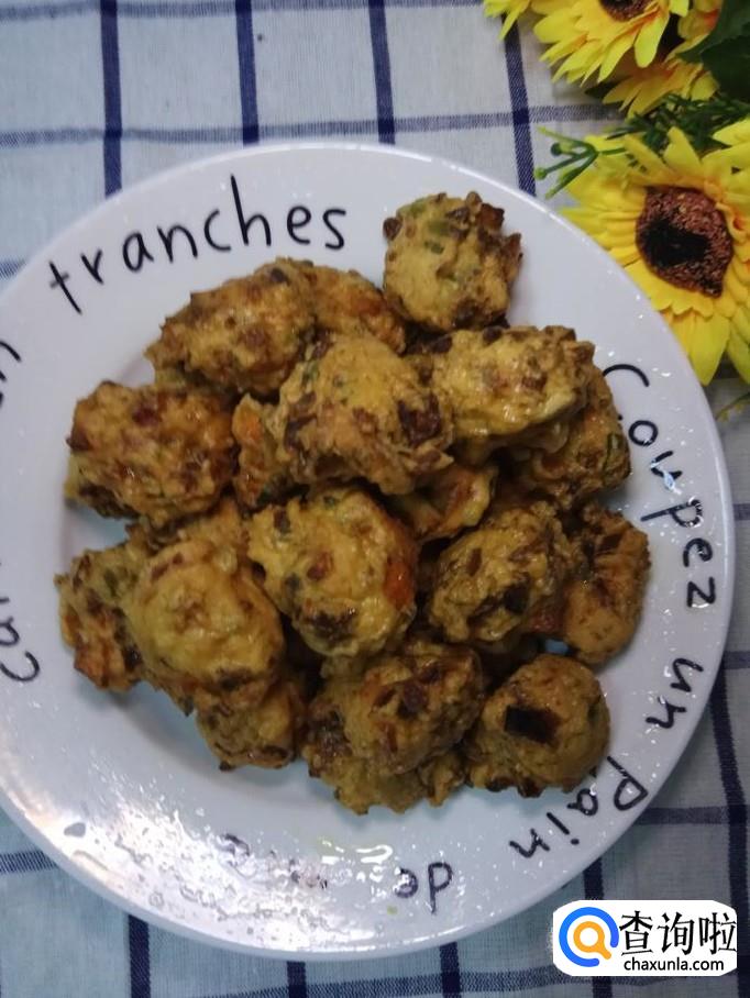 用手团成丸子,锅中放油,油温五成热,放入锅中,小火慢炸。