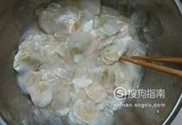 先将鱼鳞洗净放入盆中,倒入白醋和盐浸泡一会儿,浸泡的时候可以不断的搅拌,这样可以祛除鱼腥味。