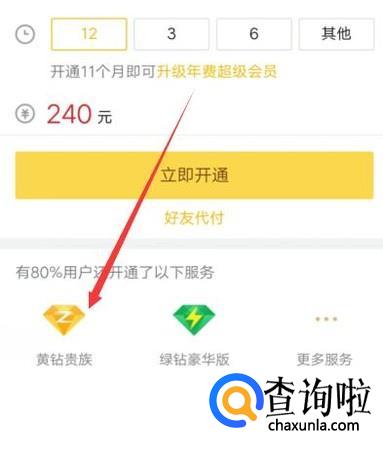 进入之后,点击“黄钻贵族”,进入下一页面,如图所示。