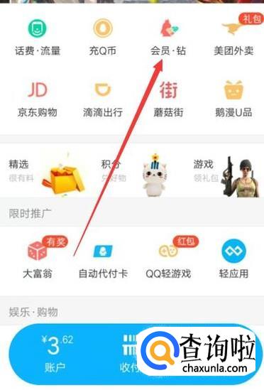 进入之后,点击QQ钱包进入下一页面,如图所示。