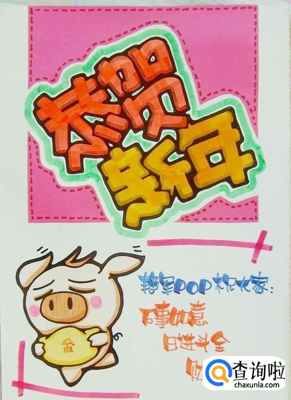 最后,等待唛克笔的油干了之后就完成了,然后就可以把你画好的POP新年海报挂在墙上了!