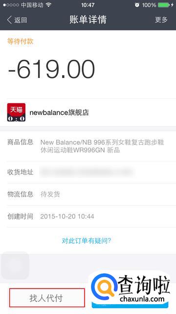 进入该笔款项后,找到”找人代付“一项,点击进入。