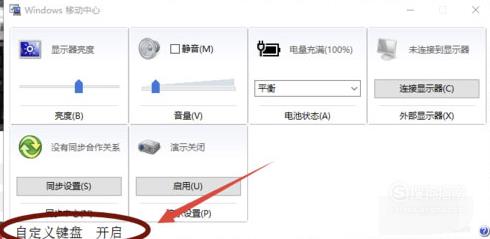 很显然这里没有键盘灯;如果笔记本配有键盘灯,那么就可以点击自定义键盘灯开启。
