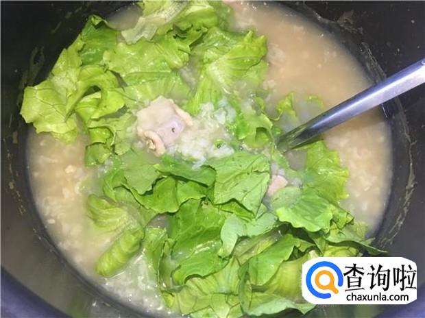 瘦肉煮好后,加入适量的盐调味,最后加入青菜丝。