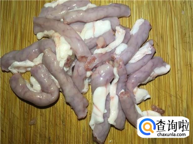 猪肝请洗干净,切成薄片,再放入水中泡一下,去掉血水;