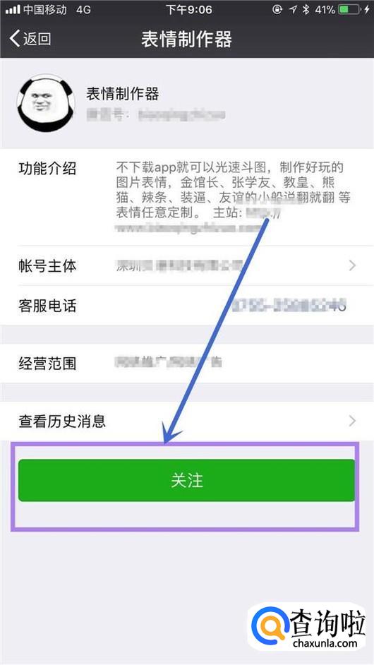 首先关注表情制作器公众号,如下图所示。