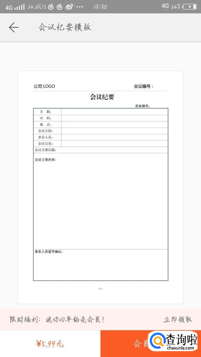 点击一个会议纪要模板,如图1所示。可以按照这个模板,自己书写就行