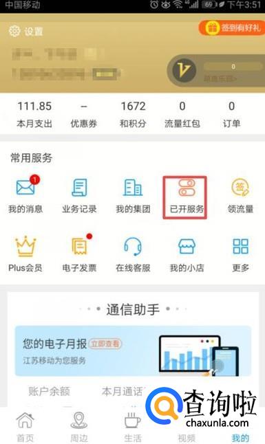 之后我们点击已开服务;