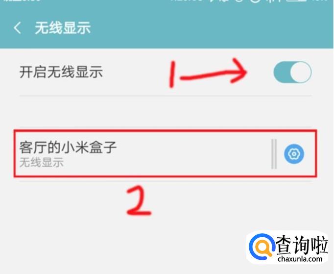 先开启无线显示的按钮,然后等,看到电视上有了引导信号然后在手机上点击这个设备,然后它就会自动的同步连接,就完成了.