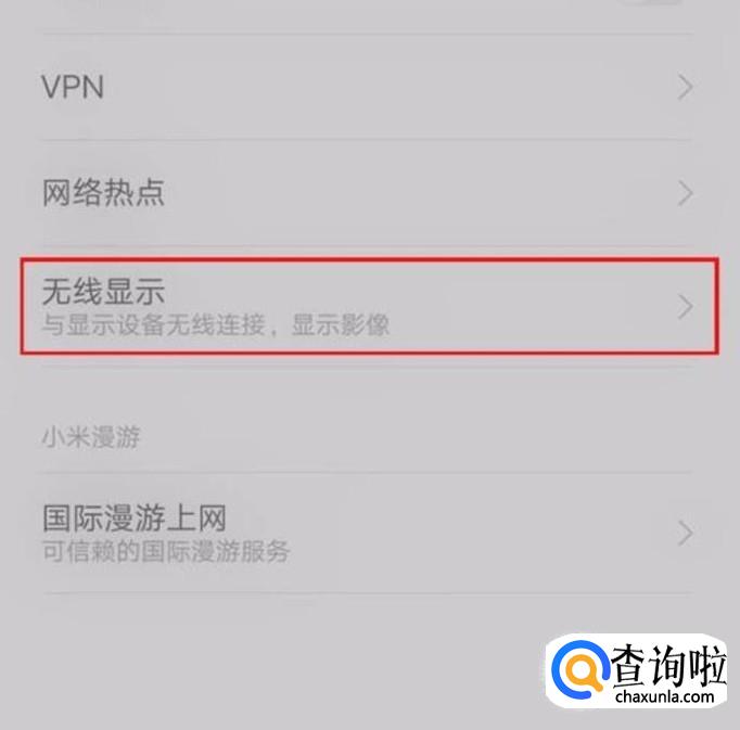 在选项中,点击"无线显示",会进入到具体的设置页面.