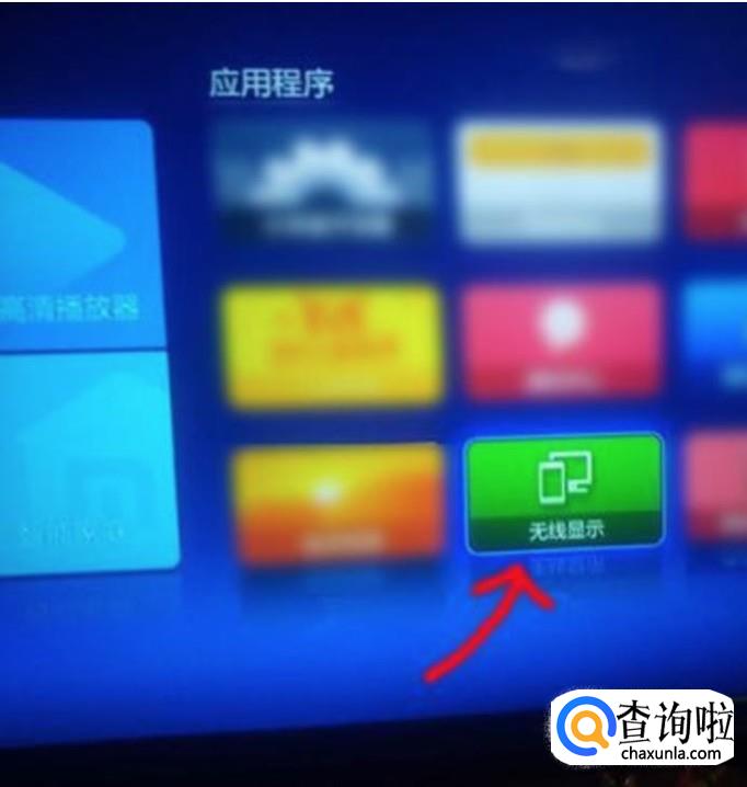 在电视上打开盒子的操作页面,找到一个无线显示的应用.