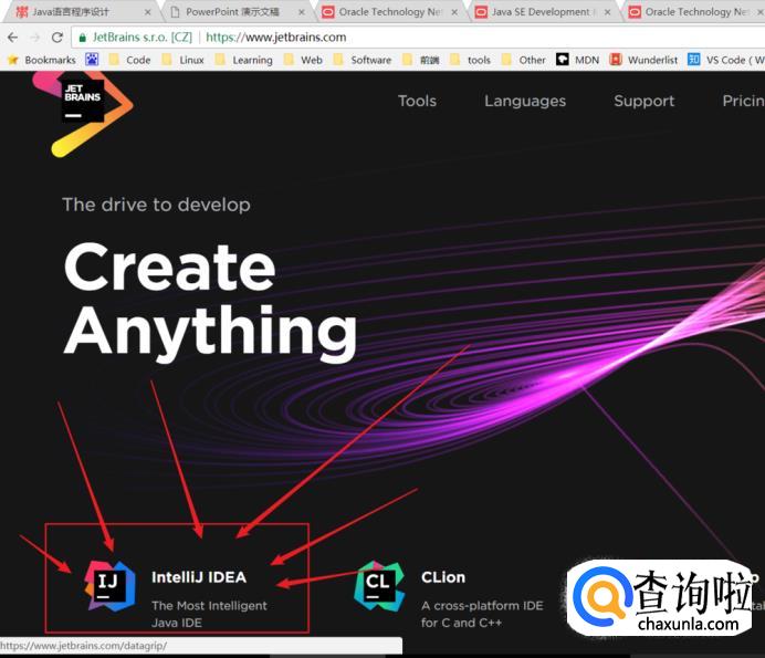 既然是 JetBrains 出品的软件,我们自然都去它的官网下载,JetBrains官网:https://www.jetbrains.com/,进入官网后,直接点击’IntelliJ IDEA‘进入产品页面。