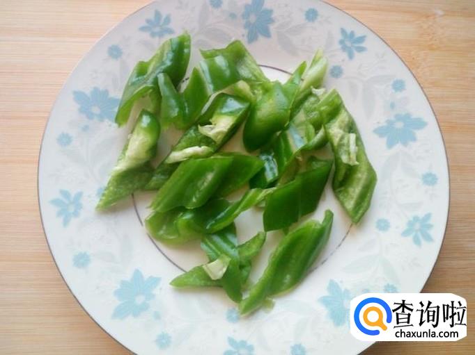 青椒用水清洗干净,控干水分,切成片。切好葱,姜,蒜,备用。