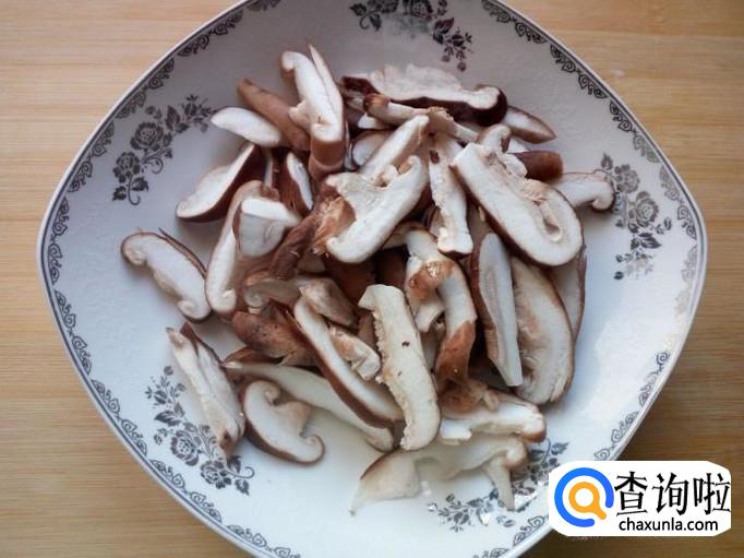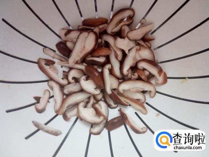 香菇用水焯一下,水开后入锅10秒钟捞出,用冷水过凉,沥干水分。
