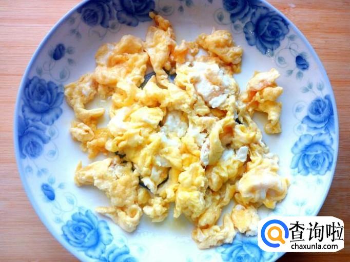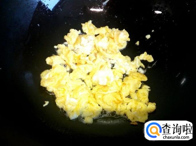 用锅把鸡蛋炒出来,炒至八分熟,盛出备用。
