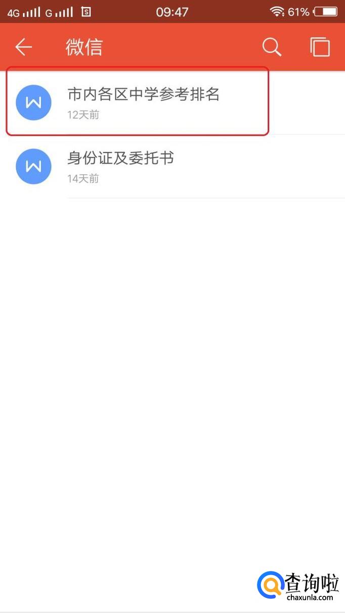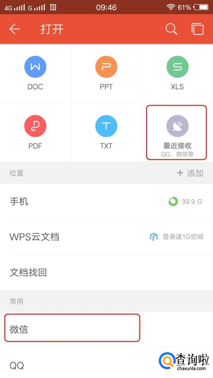 在界面内找到“微信”,或者点击“最近接收”。