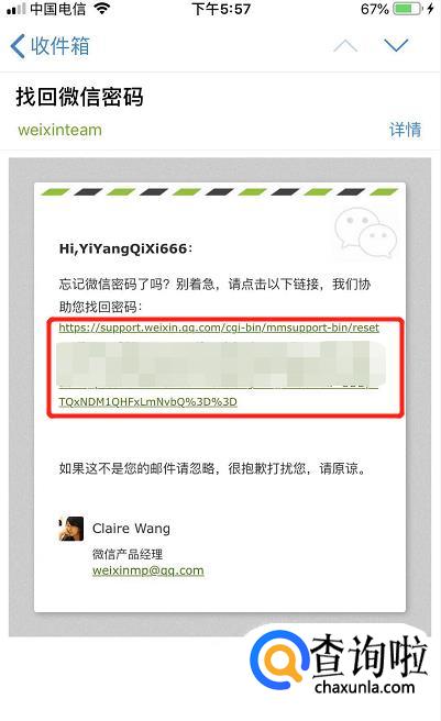 可以先到登录的界面,输入你登录的号,然后点忘记密码,之后选择用Email找回,之后输入你绑定的邮箱(一般扣扣邮箱都可以)可以重置密码,然后微信团队会给你的邮箱发网址,你打开按照提示修改就可以了,如图所示。