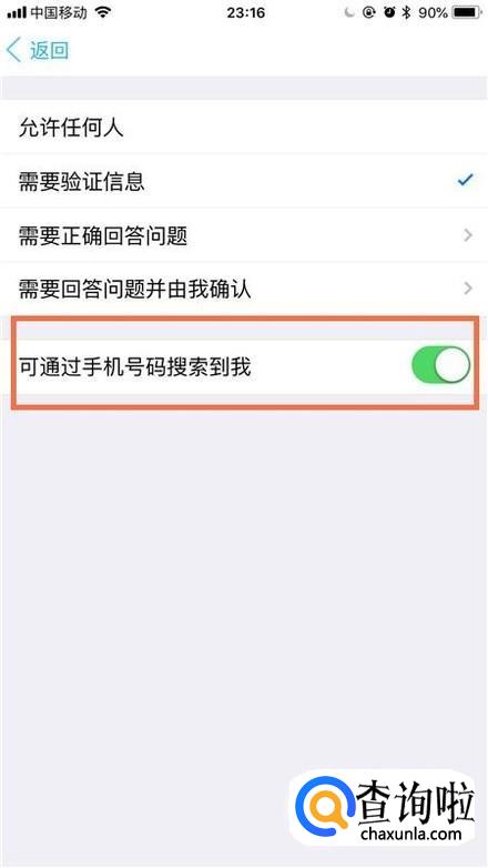 最后点击开启可通过手机号搜索到我开关就可以了。