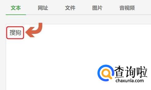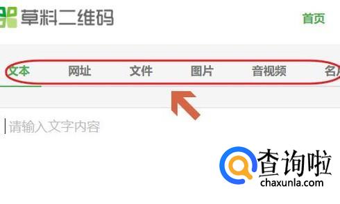 在该网站首页左上角,我们可以看到它支持文字、图片以及链接转换为二维码,我们选中“文本”然后在下方的输入框中输入文字内容,比如搜狗两字;