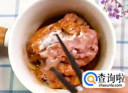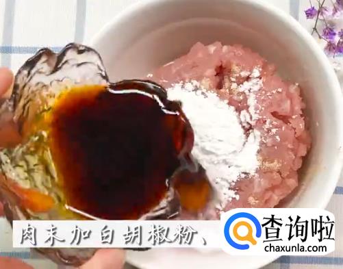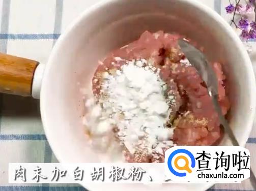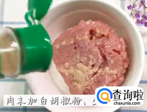 肉末加白胡椒,生抽搅匀 。