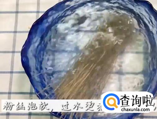 将粉丝泡软,下锅煮熟,切记不能煮的太软。