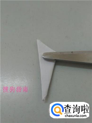 将三角形右边的角向左边对折。