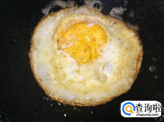 在锅里加入适量的食用油,将鸡蛋打入锅里,煎成荷包蛋的形状最好;将煎蛋盛出备用;