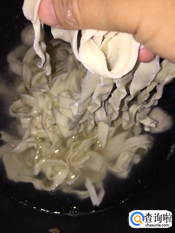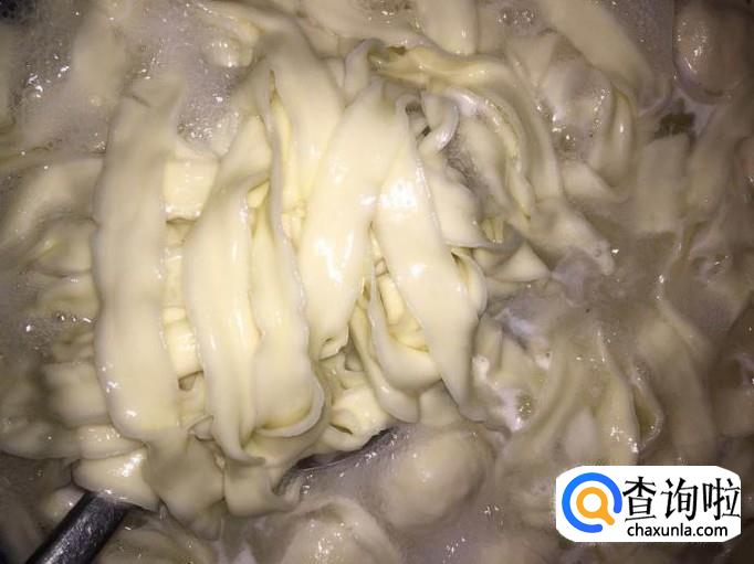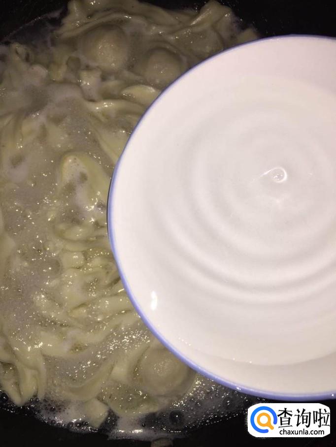 待锅里的汤汁煮开后,再盛一碗清水加入,再次煮开;这样能够使面更有弹性;