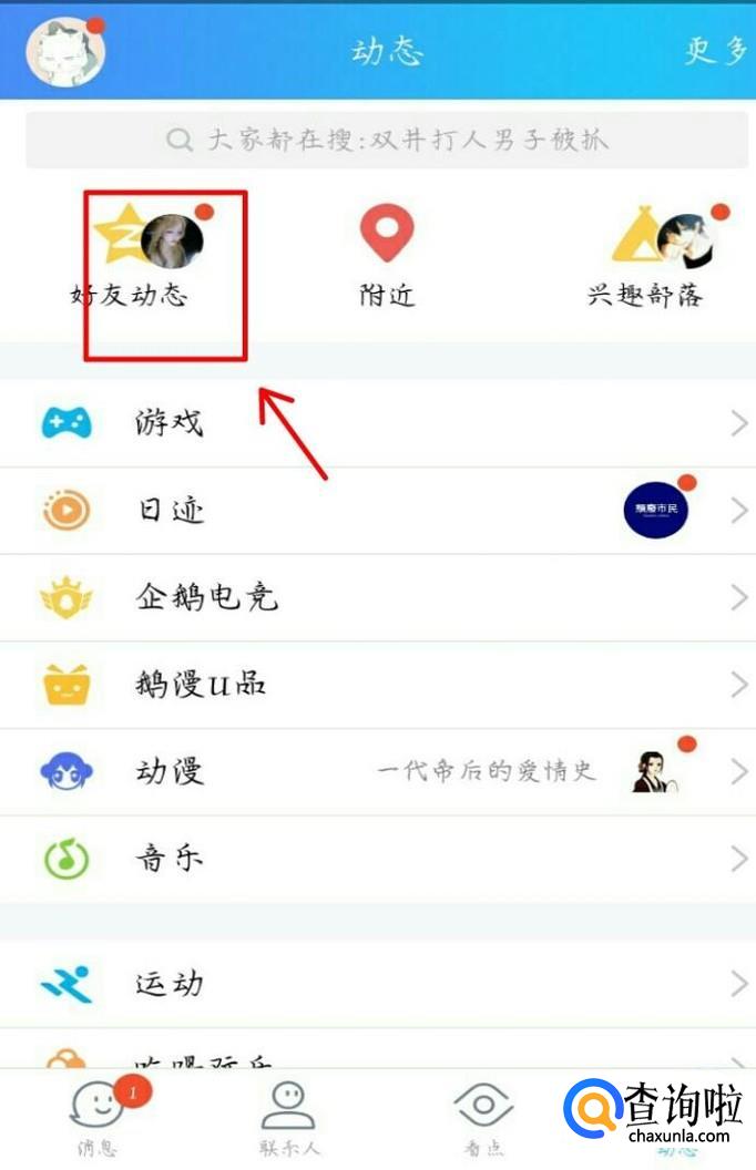 我们在动态中可以看到很多的内容,我们点击左上角的第一个“好友动态”并进入,好友动态就相当于是qq空间,如图所示。