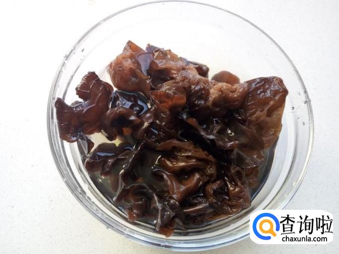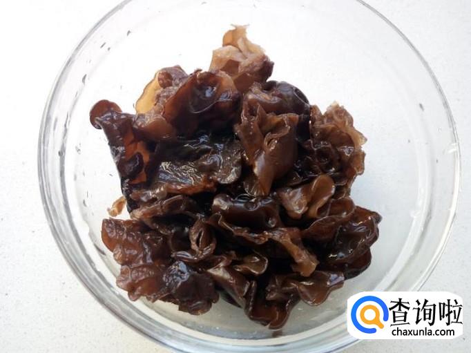 用温水快速泡发木耳,把泡发好的木耳收拾清洗干净,控干水分,备用。