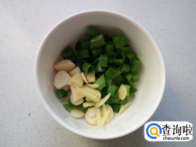 碗里放入盐,味精,酱油,料酒,再放入切好的葱,姜,蒜,兑少量的水,调和成料汁,备用。