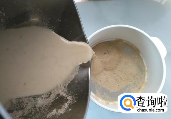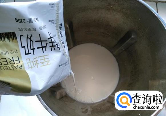 在豆浆机中倒入1袋鲜牛奶。