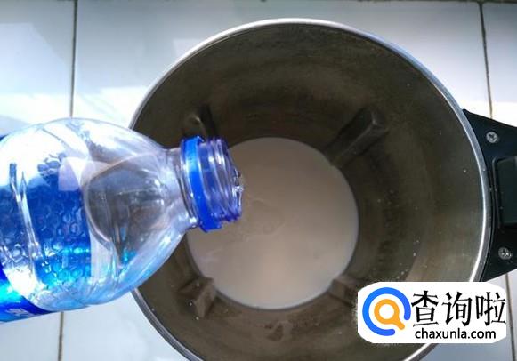 倒入矿泉水,倒至豆浆机的最低水位线和最高水位线之间。