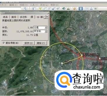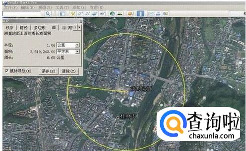 在google地图客户端中以自己为圆心,以1.07km为半径画一个圆。如图